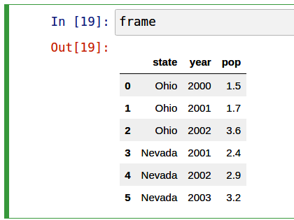 In [2]: import pandas as pdThus, whenever you see pd. in code, it’s referring to pandas. You may also find it easier to import Series and DataFrame into the local namespace since they are so frequently used: